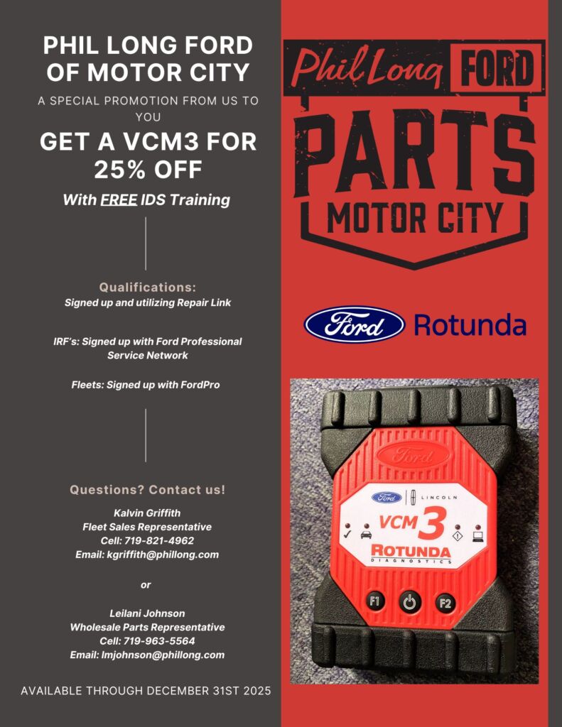 At Phil Long Ford of Motor City Parts, we’re not just here to sell you parts — we’re your partner in keeping your shop, fleet, or collision center rolling. Based right here in Colorado Springs, we help shops all across Colorado get fast, reliable access to genuine OEM Ford parts.